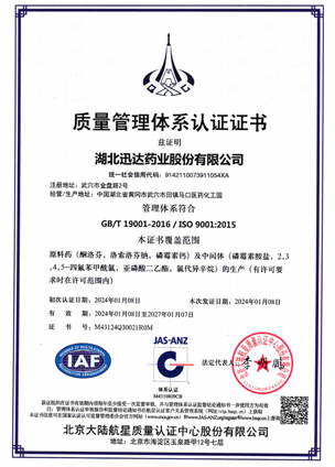 公司聚焦于原料藥及中間體的研發(fā)、生產(chǎn)、制造,通過ISO9001、ISO14001、OHSAS18001體系認(rèn)證,實(shí)施全面質(zhì)量管理,質(zhì)量均達(dá)到世界高端藥典標(biāo)準(zhǔn),分別通過了國(guó)家 GMP 認(rèn)證、日本厚生省醫(yī)藥品外國(guó)制造者認(rèn)證(PMDA 認(rèn)證)、日本官方 GMP 現(xiàn)場(chǎng)審計(jì),酮洛芬產(chǎn)品通過歐洲 COS 認(rèn)證、完成美國(guó) FDA 備案,多種產(chǎn)品獲得新加坡、韓國(guó)、俄羅斯等國(guó)家及地區(qū)的備案。在磷霉素類、酮洛芬類、喹諾酮類醫(yī)藥中間體市場(chǎng)中具備一定的競(jìng)爭(zhēng)力。